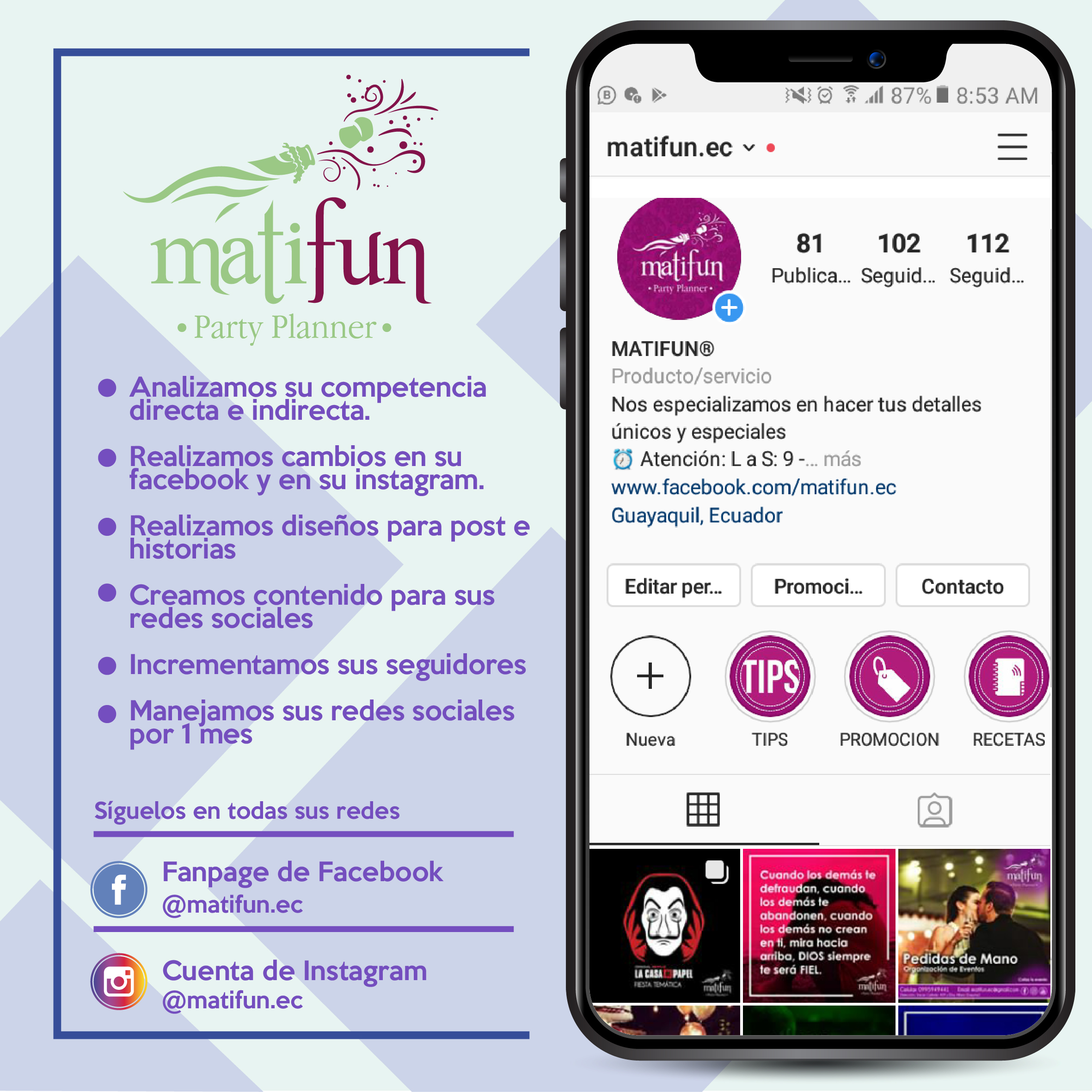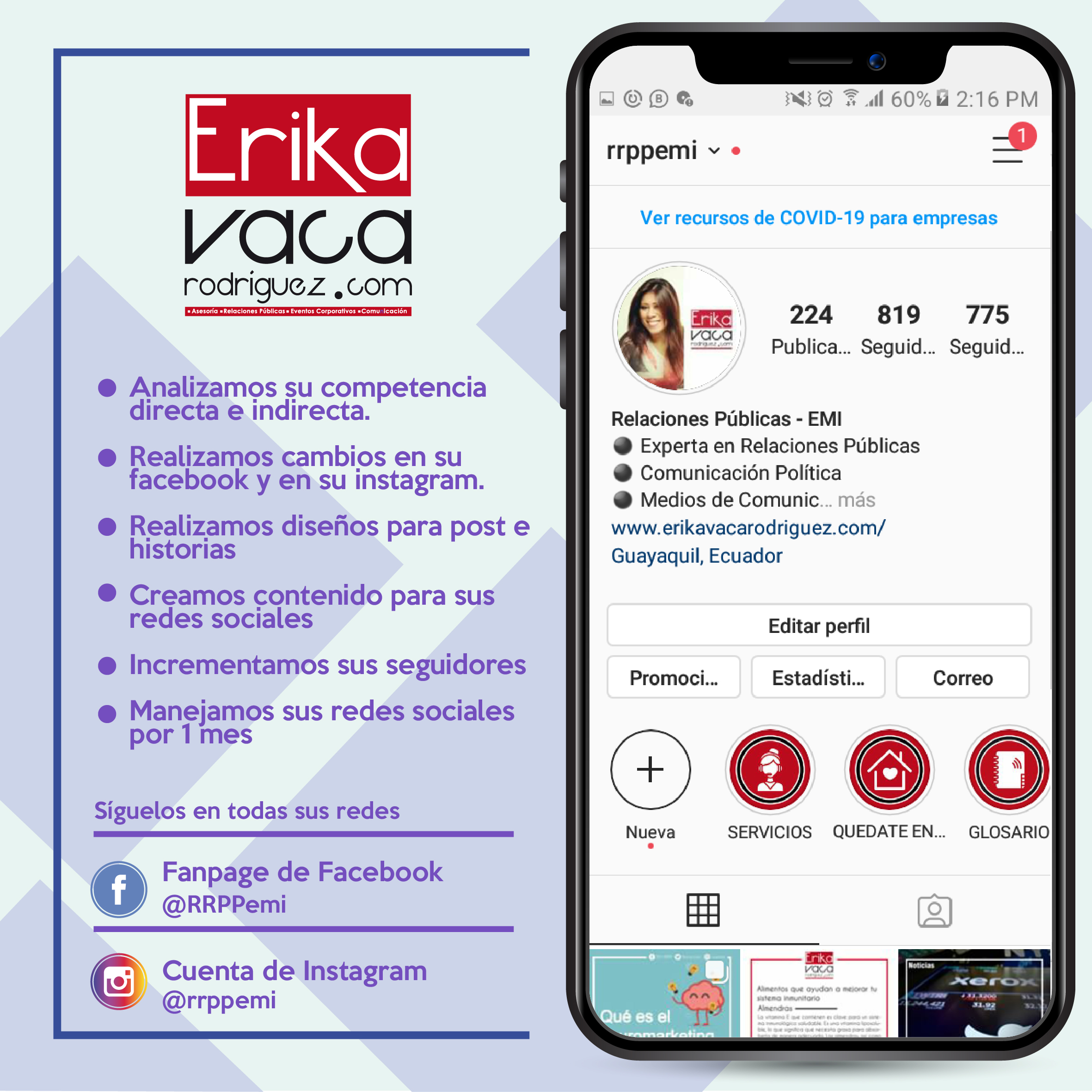 - Asesoramiento personalizado en tus redes sociales.